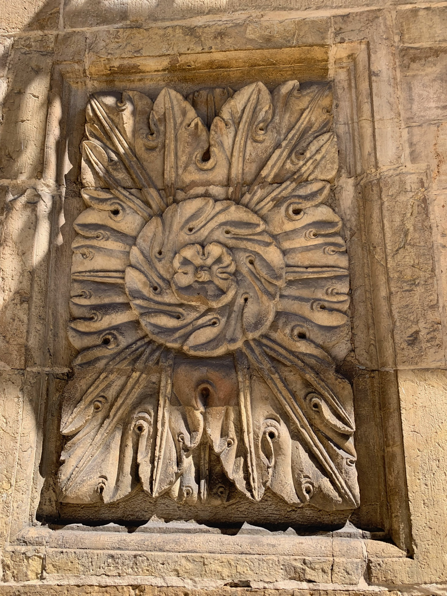 Garrando como referencia l'escudu, pueden apreciase nos balcones centrales, diferentes columnes que van cambiando d'estilu al tiempu que se va baxando pal pisu d'abaxo. Con too esto paez que tamos delantre un retablu, lo que constitui otru elementu especial del palaciu. Tamién hai de destacar abondos elementos decorativos d'esta fachada.