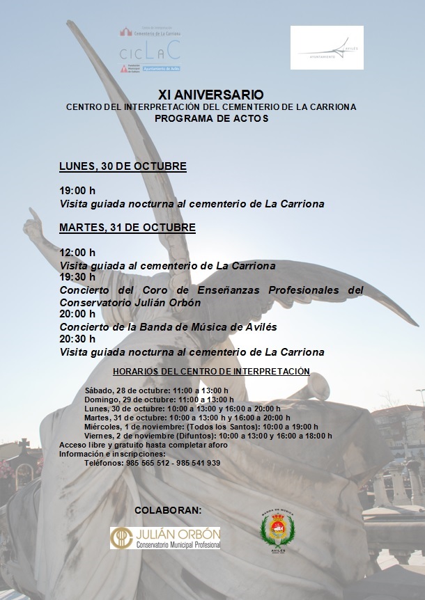 Con motivo del decimoprimer aniversario de la inauguración del Centro de Interpretación del Cementerio de La Carriona (CICLAC) y coincidiendo con la festividad de Todos los Santos se presenta un programa de actividades que comienzan el lunes 30 de octubre.