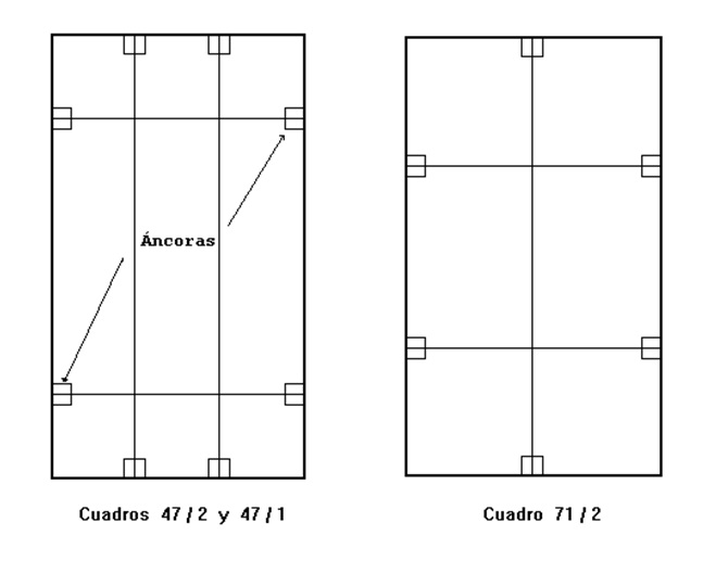 2.- En la extremidad de cada una de estas líneas, al igual que en el Cuadro 47/2 y 47/1, se trazarán los pequeños cuadros o áncoras.
