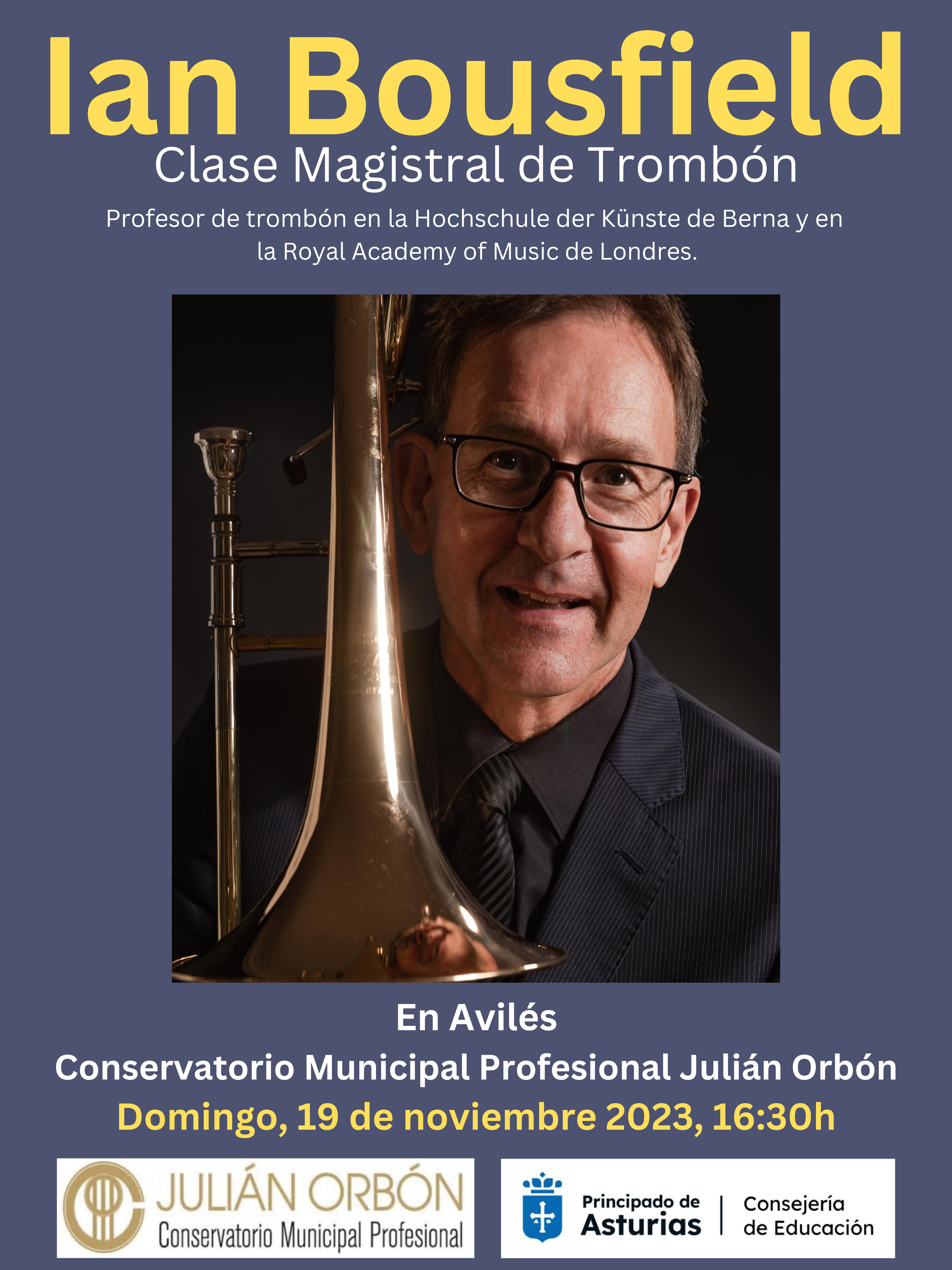 El Conservatorio Municipal Profesional Julián Orbón enriquece una vez más el programa académico destinado a su alumnado, con la invitación de uno de los músicos de su especialidad más influyentes del mundo, el maestro Ian Bousfield. Ofrecerá pasado mañana, domingo 19 de noviembre, una clase magistral de trombón en el Auditorio del centro educativo, a las 16.30 horas.