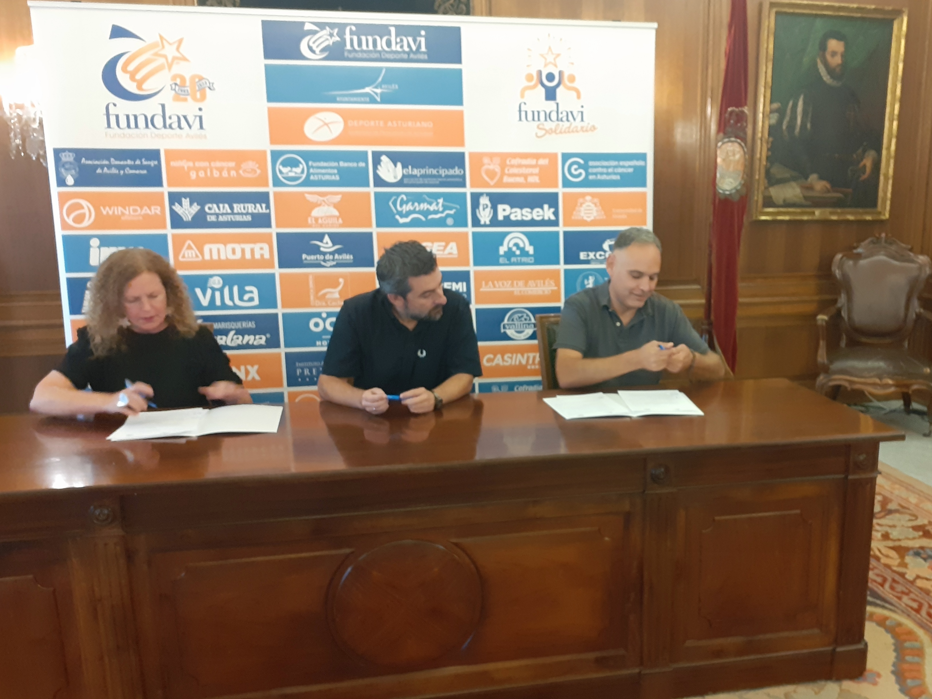 La propietaria de Flores Alisma, Mercedes Velasco Romero, y el presidente de Fundavi, Gerardo González Fuertes, han firmado en el Salón de Recepciones del Ayuntamiento de Avilés, en presencia del concejal de Desarrollo Urbano y Económico, Manuel Campa, la renovación del convenio que vincula a ambas entidades hasta diciembre de 2025.