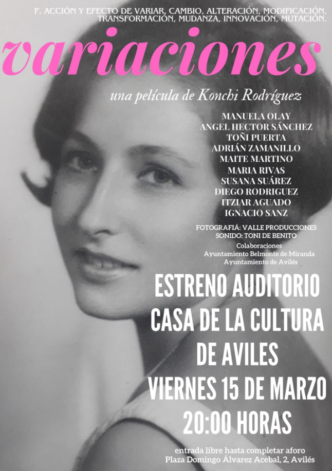 La cineasta y docente Konchi Rodríguez presenta este viernes 15 de marzo en Avilés su más reciente producción cinematográfica, el largometraje "Variaciones". La proyección tendrá lugar a las 20.00 horas en el Auditorio de la Casa de Cultura, con entrada libre hasta completar el aforo.