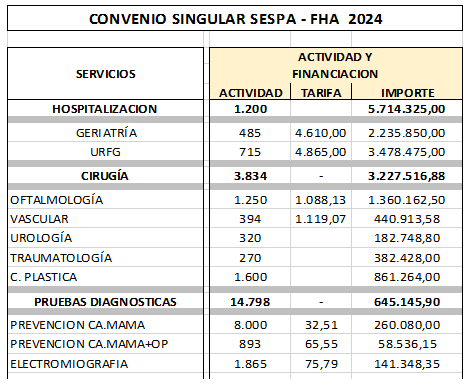 Del total de ingresos presupuestados para el ejercicio, los ingresos por prestación de servicios al SESPA suponen el 98,62%. Del total de ingresos presupuestados por la actividad propia, los ingresos por prestación de servicios al SESPA suponen el 99,38 %.