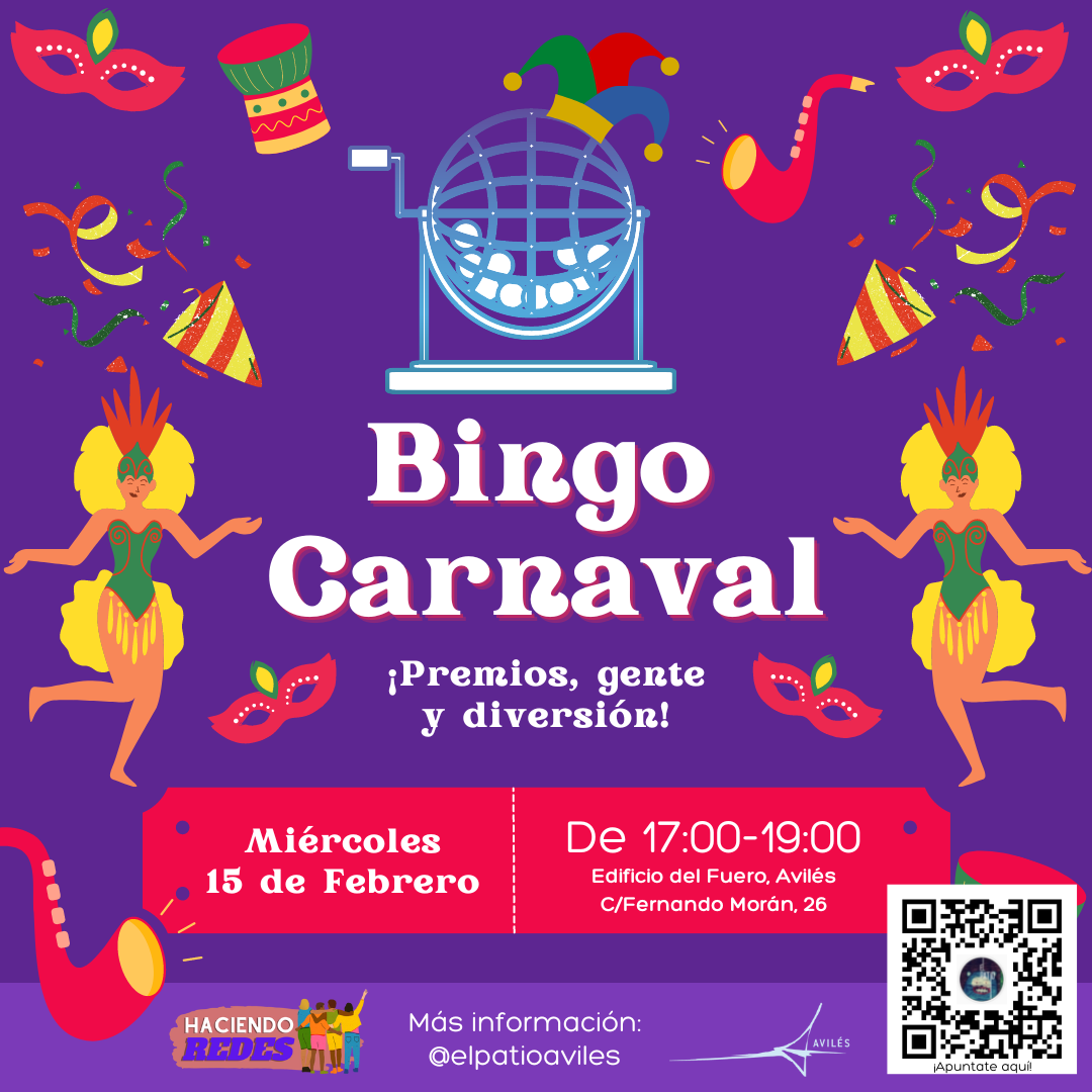Se trata de una actividad gratuita y abierta a todos los jóvenes que les apetezca pasar un buen rato. Será necesario inscribirse a la actividad a través del siguiente formulario: https://docs.google.com/forms/d/e/1FAIpQLSdNJbviXXC294NX8sZef6Gjh2CUm048o3lqFTDgdlTS9FiwDw/viewform o a través de la cuenta de Instagram de @elpatioaviles. Consta de tres tipos de bingos temáticos de carnaval con premios para los jóvenes que resulten ganadores.