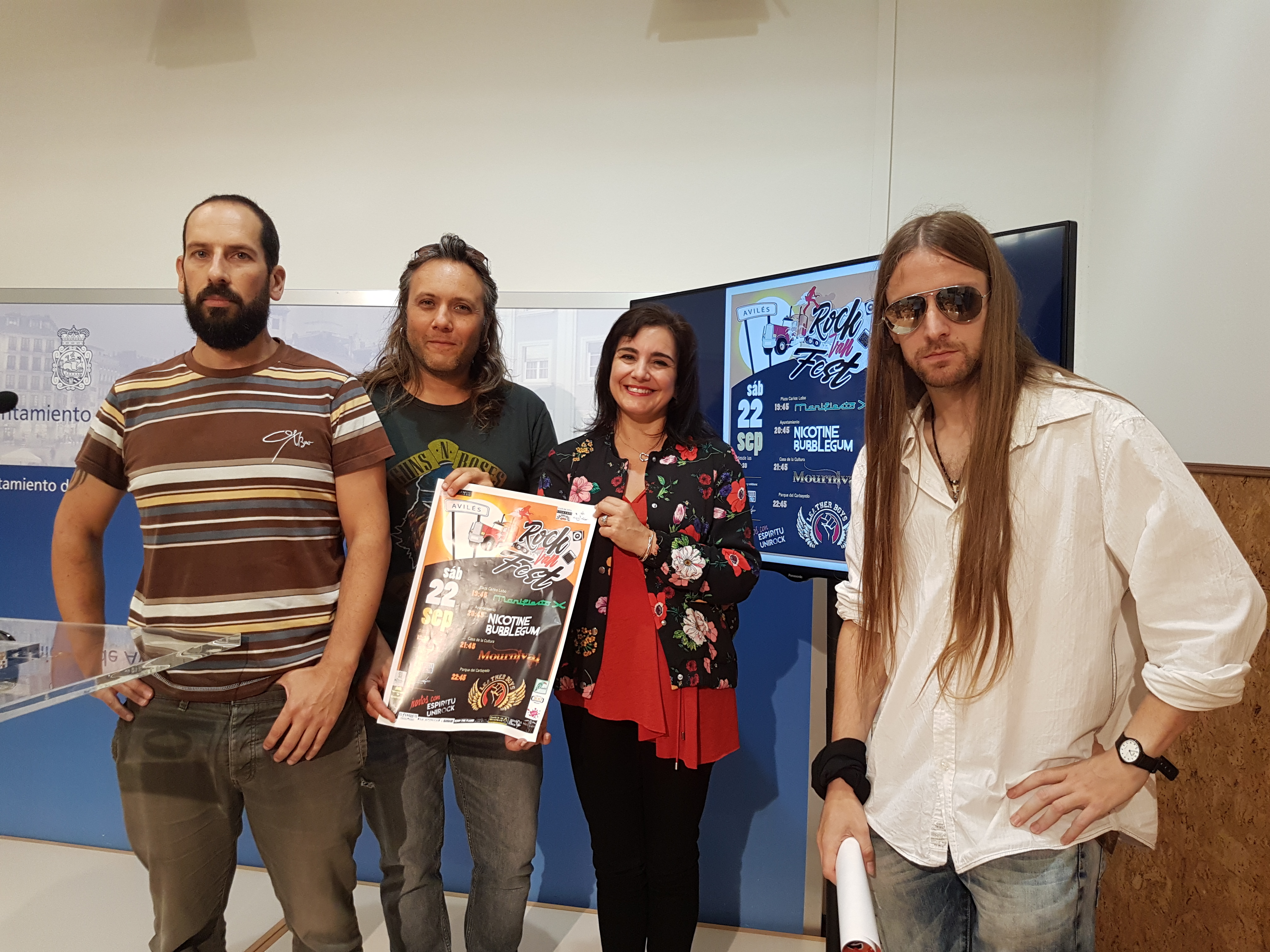 299813LaconcejaladeCultura,YolandaAlonso,concejaladeCultura,acompanadaporLuismiDiaz,presidentedeVallinielloSoundCityymiembrodeLeatherBoysyNicotineBubblegum;AlbertoMenendez,.jpeg