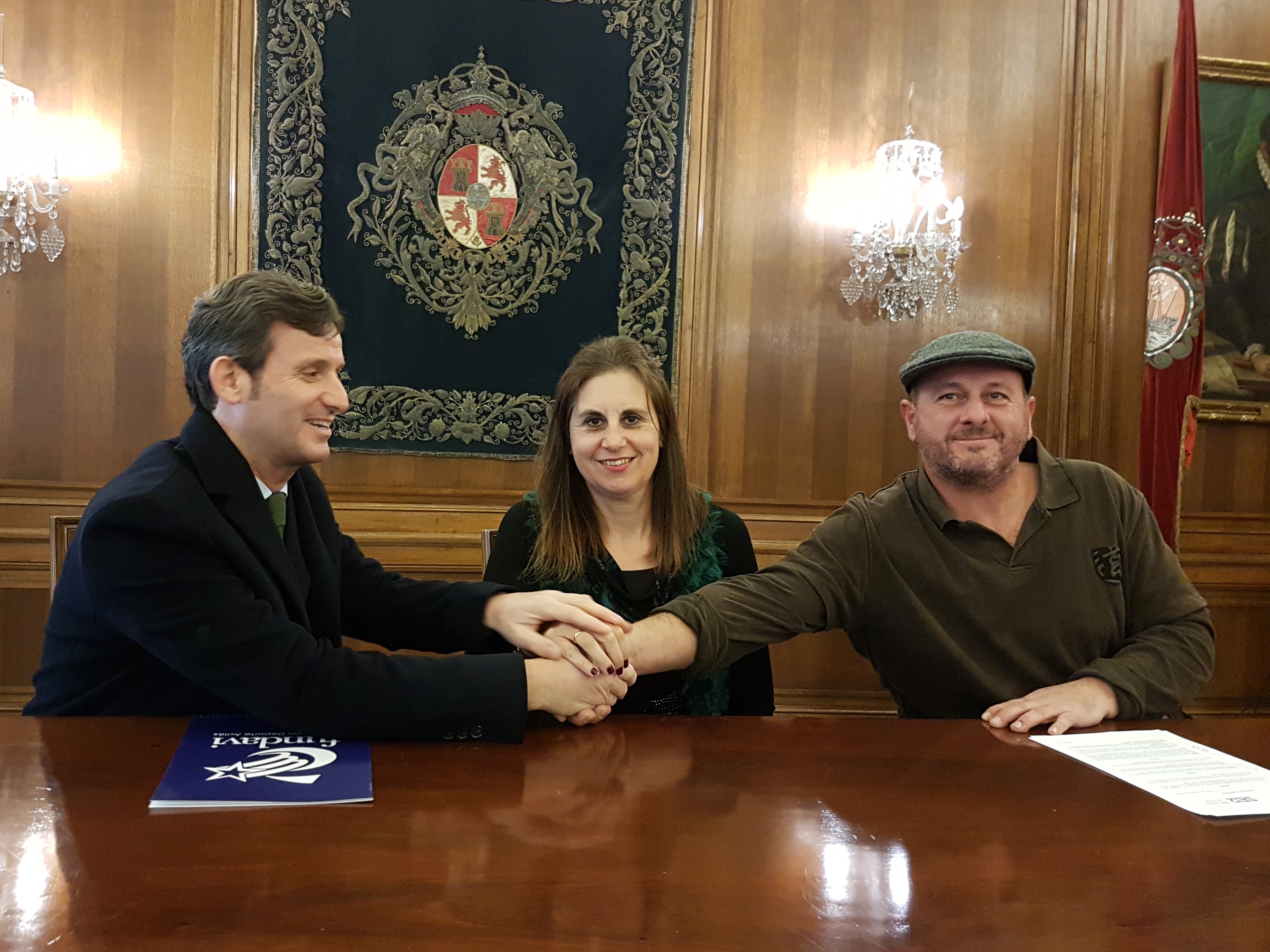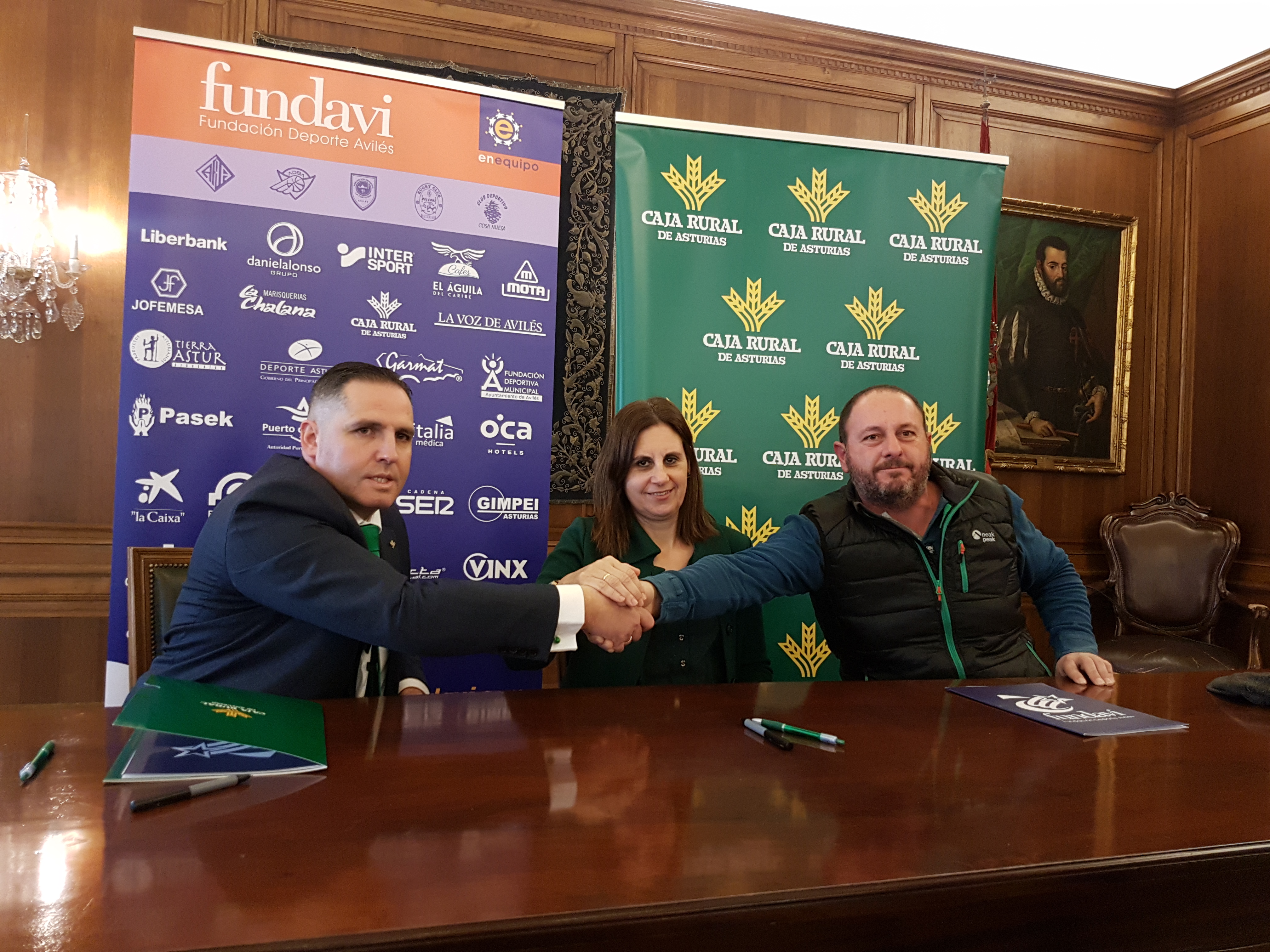 277514EldirectordeComunicaciondeCrivencarTierraAstur,JavierOrta;laconcejaladeDeportes,NuriaDelmiro,yelpresidentedeFundavi,AladinoPandiella,traslafirmadelacuerdo.jpeg