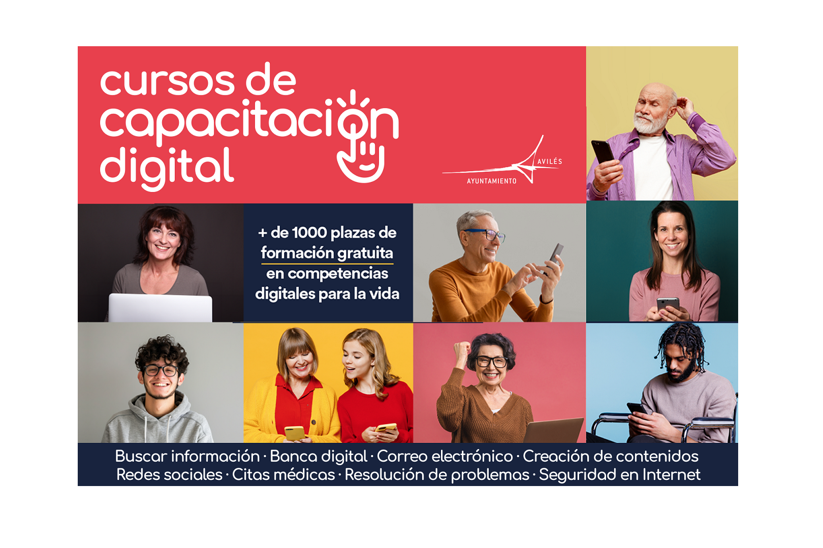 Para ello ofrecemos talleres de corta duración (10 horas), presenciales (en el Centro de Capacitación Digital y en el Centro de Empleo "Europa") en jornadas de mañana o tarde, con horarios flexibles, en grupos reducidos y con el apoyo que necesites para que puedas encajarlos en tu vida habitual.