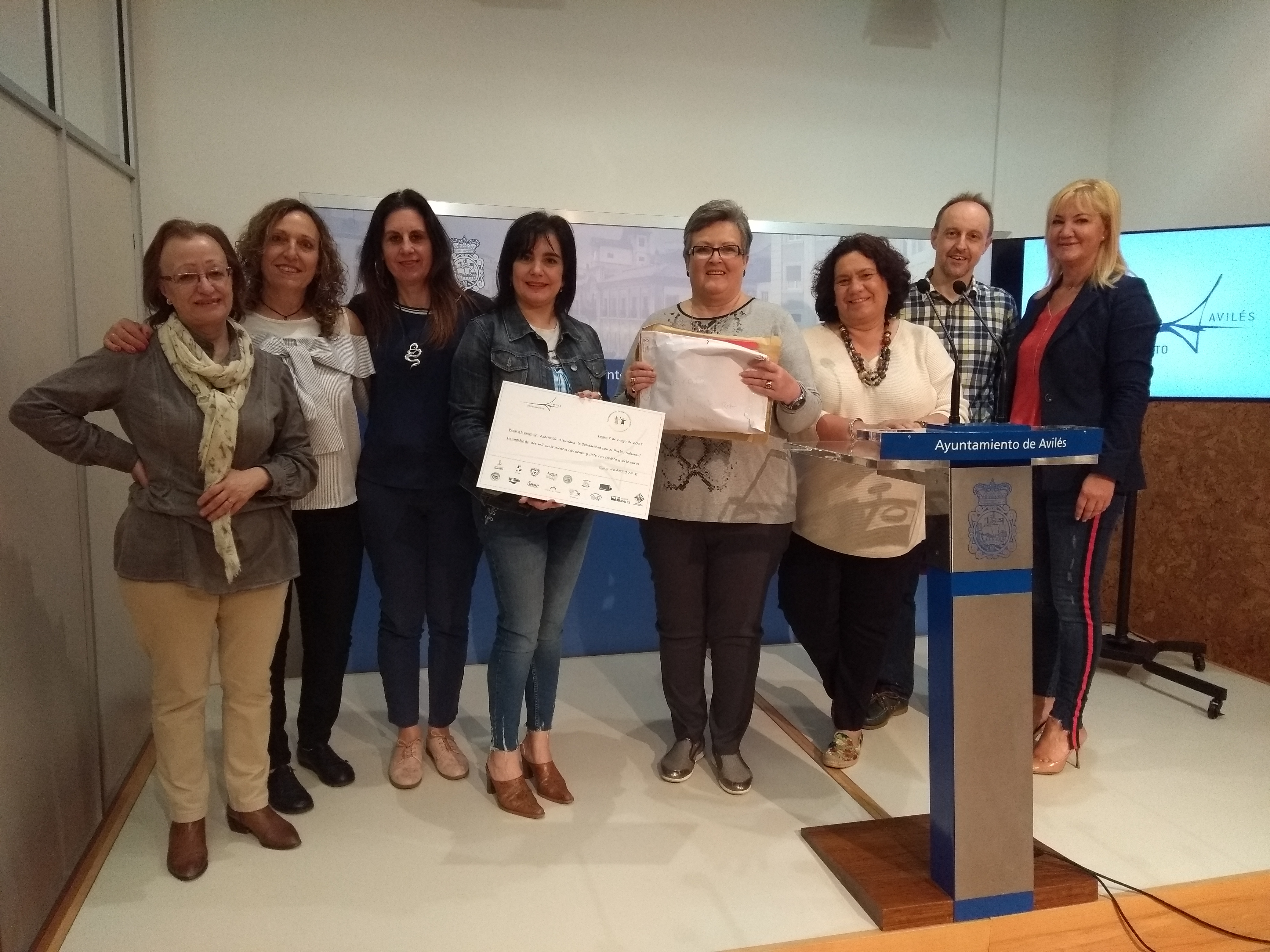 360068LaconcejaladeCultura,YolandaAlonso,juntoarepresentantesdelaAsociacionAsturianadeSolidaridadconelPuebloSaharaui,profesoradodeloscentroshermanadosconelSaharaypersonald.jpg