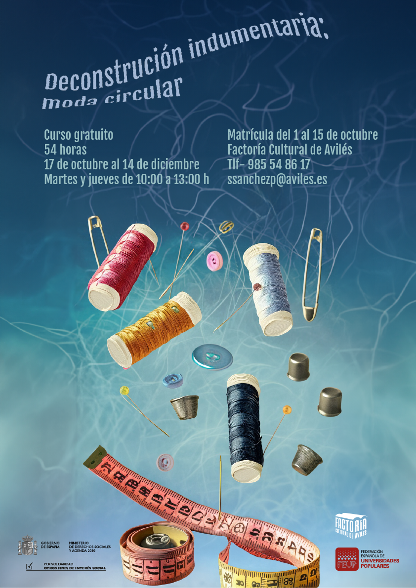 La colaboración entre la Factoría Cultural de Avilés y la FEUP, Federación Española de Universidades Populares, organiza un nuevo taller gratuito hasta diciembre. Se trata de "Deconstrucción indumentaria: moda circular", que fomentará la fusión de proceso creativo y reciclaje en la confección de ropa. Con un máximo de diez plazas disponibles, el plazo de matrícula se encuentra abierto y concluye pasado mañana, domingo 15 de octubre.