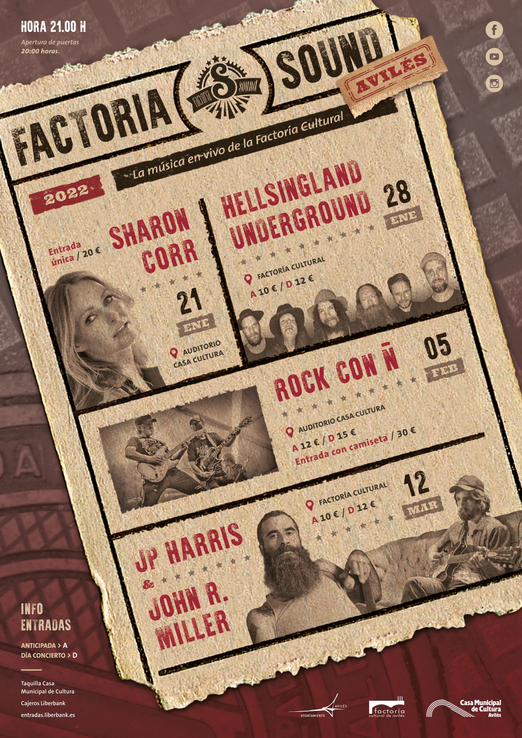 Las entradas de Sharon Corr tendrán un precio único de 20 euros; de Hellsingland y JP Harris y John R Miller, 10 euros en venta anticipada y 12 el día del concierto, y el de "Rock con Ñ", 12 y 15 euros respectivamente; en los canales habituales.