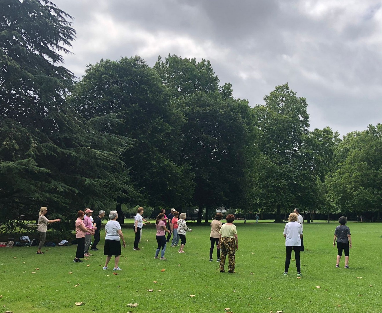 Grupo de Taichí de 2023 atendiendo a las explicaciones del monitor.