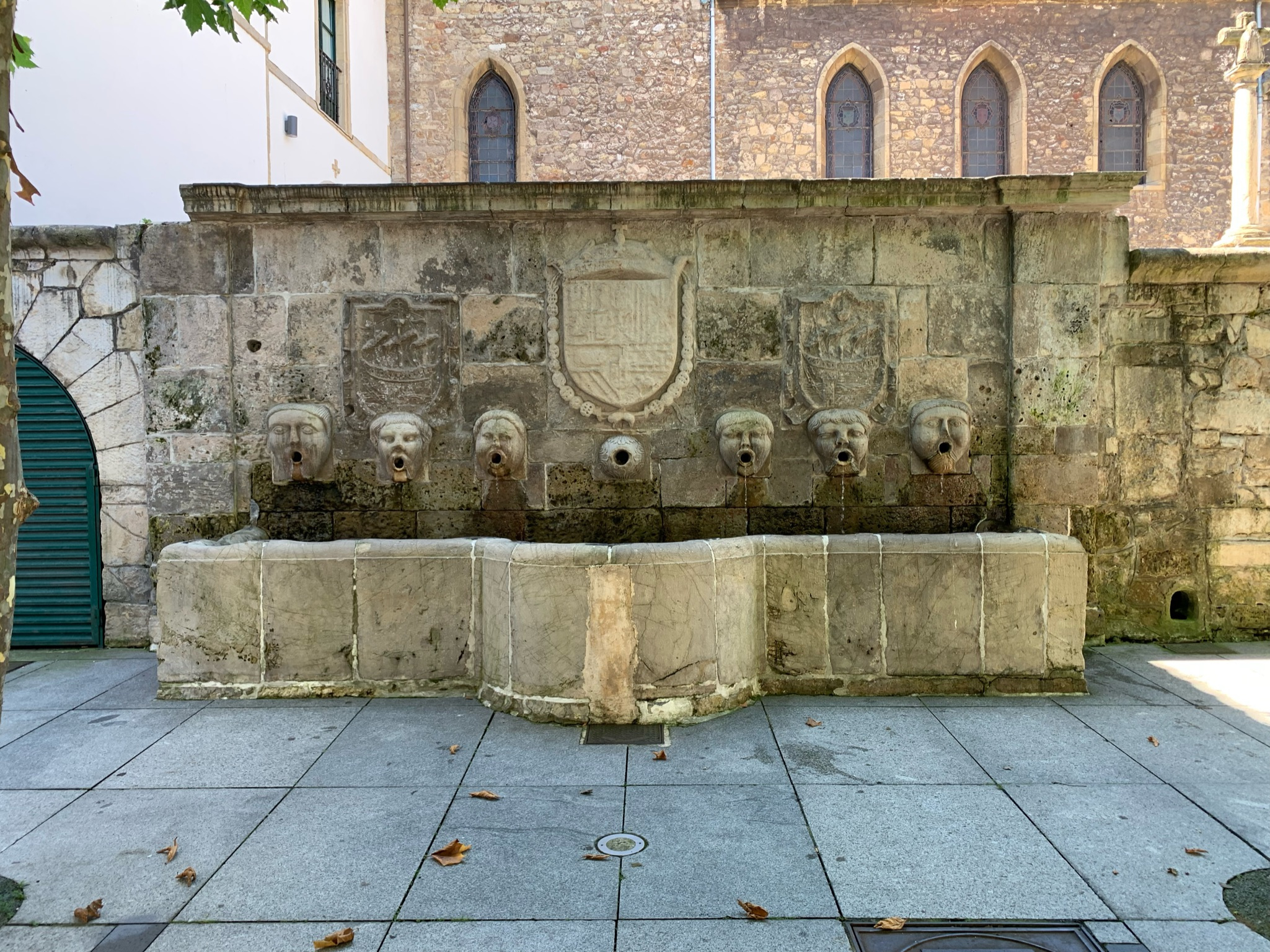 A finales del siglo XVI comienzan las obras destinadas a canalizar la traída de aguas hacia Avilés, tomando como origen la zona alta, en los alrededores de La Villa, concretamente en el sitio conocido como Valparaíso. Anteriormente el agua bajaba libremente por cauces, lo que no resultaba muy higiénico y lo que es peor, era un peligroso foco de enfermedades, por tanto, se acomete la obra de canalizarla. La labor, que dura siete años, dio origen a fuentes públicas en la ciudad y es esta de San Francisco la que se conserva de aquel tiempo. La de los caños de Rivero es de construcción más tardía. La fuente de los Caños de San Francisco es un monumento singular. Consta de un frontal de la que surgen seis cabezas humanas que emanan el agua hacia un pilón rectangular que adopta forma ovalada en su centro. Por encima de tres de las cabezas figuran elementos heráldicos: en los laterales, dos escudos de Avilés y en el centro, el de armas del reino de Castilla. Los avilesinos estuvieron años sirviéndose del agua de estas fuentes para su uso doméstico. Antiguamente el pilón cumplía la función de abrevadero para el ganado.
