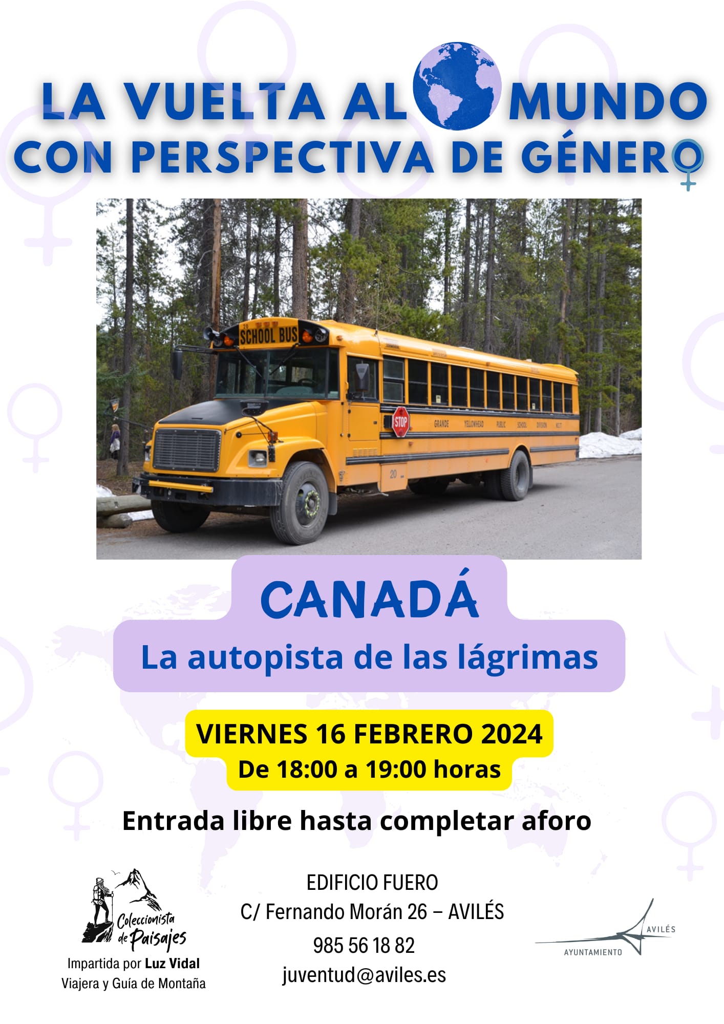 Organizadas por la concejalía de Juventud, esta nueva charla lleva por título "Canadá. La autopista de las lágrimas", en la que se pondrá el foco en una carretera llamada así porque ha sido escenario de asesinatos y desapariciones de mujeres cuando, en la mayoría de los casos, realizaban autoestop. Muchos de los crímenes sigue impunes.