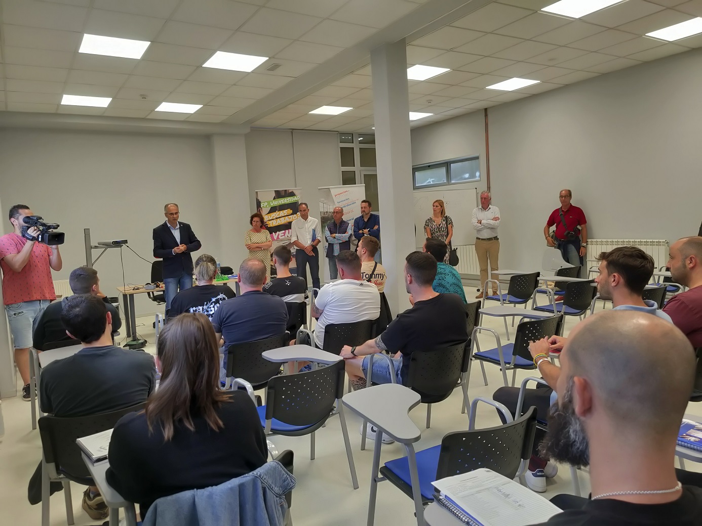 El concejal de Educación, Formación y Empleo, Juan Carlos Guerrero, ha saludado al alumnado participante en un nuevo curso de operario/a de soldadura en un acto institucional de bienvenida desarrollado en el Centro de Empleo "Europa". También han estado presentes Mariola Villarón, directora de recursos humanos del grupo Daniel Alonso y Rafael Bernardo Cobertera, responsable de formación de Femetal. Han sido acompañados por representantes de las organizaciones firmantes del pacto de concertación social “Aviles Innova”: Abilio Álvaro Azofra, secretario comarcal de UGT de Avilés; José Manuel Rodríguez Baltar, secretario general de la Unión Comarcal de CCOO de Avilés y Nuria Canel responsable de delegación de Avilés de FADE.