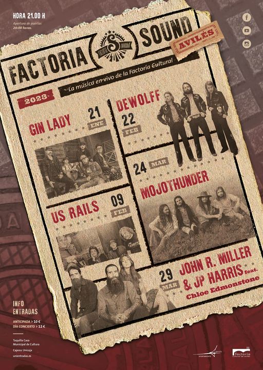 Factoría, una cita musical ineludible en el norte de España, organizado por la Concejalía de Cultura, que suma a los suecos Gin Lady, y desde Estados Unidos, a MojoThunder en su primera gira europea, y US Rails, ocho años después de nuevo en la ciudad.