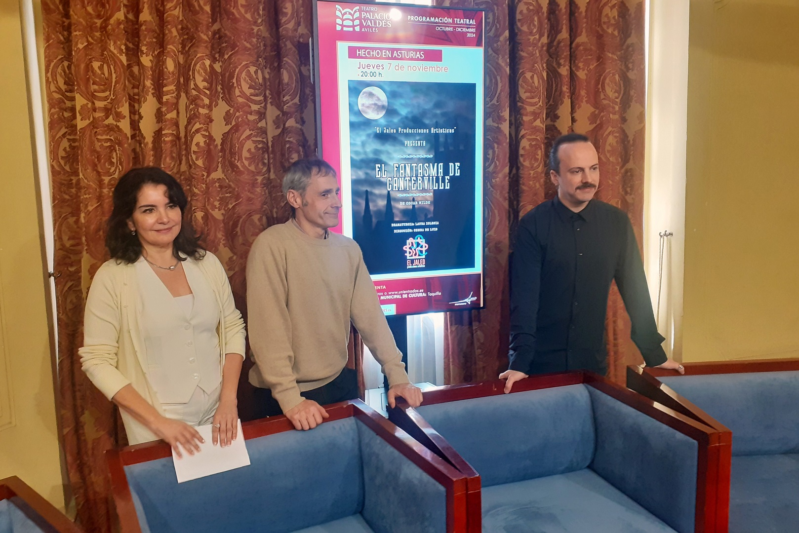 La función ha sido presentada esta mañana por Yolanda Alonso, concejala de Cultura de Avilés, acompañada por los actores Carlos Dávila, que interpreta al fantasma, y Luis Alija.