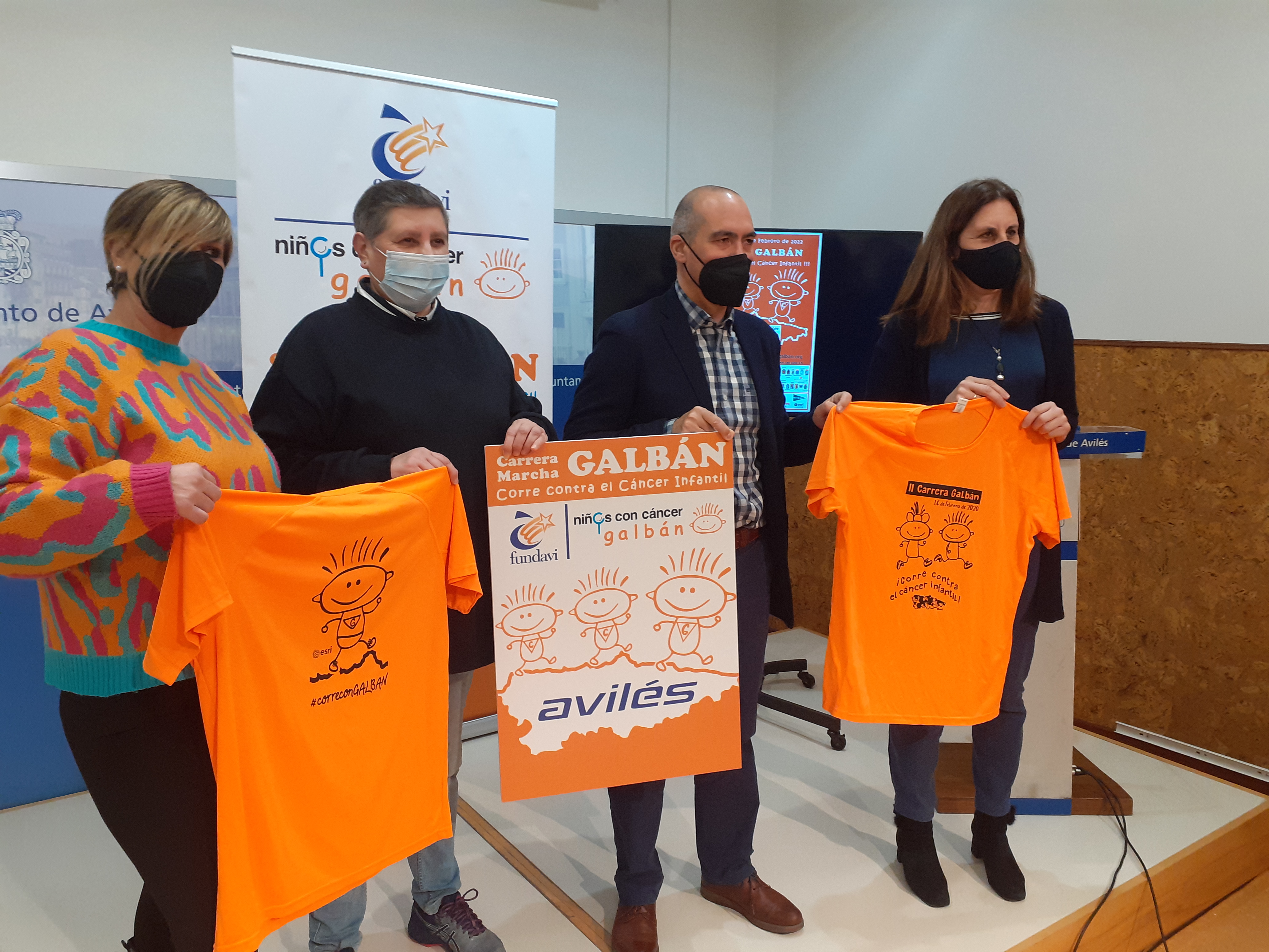 La Carrera Galbán ha sido presentada esta mañana en rueda de prensa por los responsable de la Asociación Galbán en Avilés, Verónica Álvarez y Luis Enrique Llames; la presidenta de Fundavi, María José Ondina, y la concejala de Deportes, Nuria Delmiro.