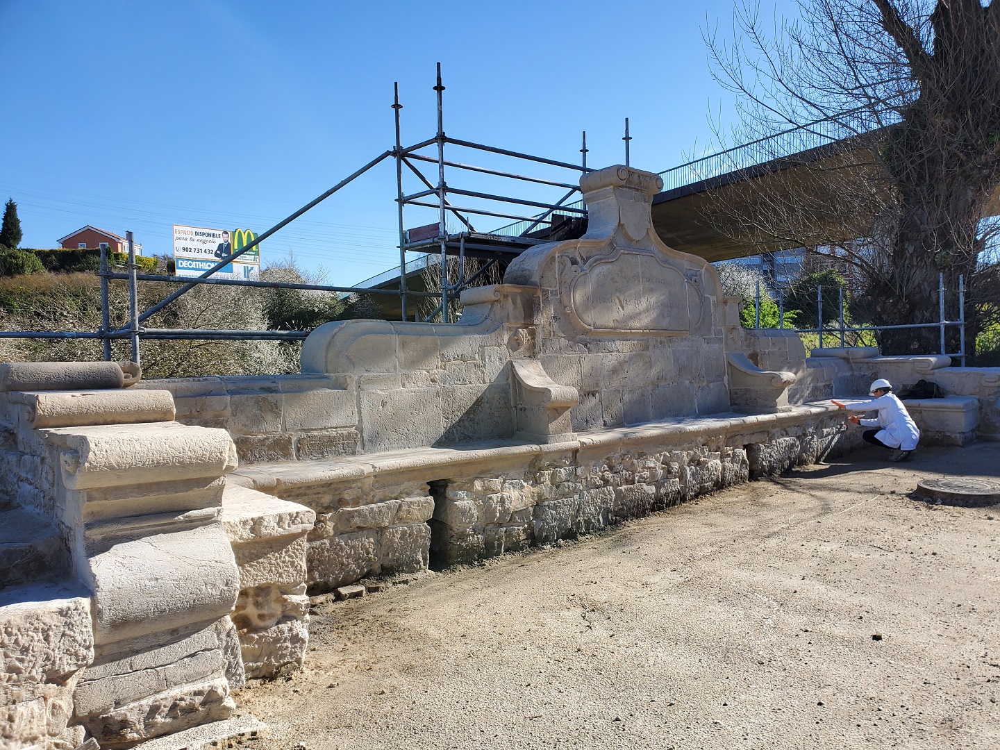 En lo que se refiere a la remodelación del entorno del monumento, se procedió a reconducir algunas instalaciones enterradas como trabajo previo a la renovación del pavimento, cuya ejecución está en marcha. Una vez retirado el antiguo y está próxima a iniciarse la instalación del nuevo firme, formado por adoquines.