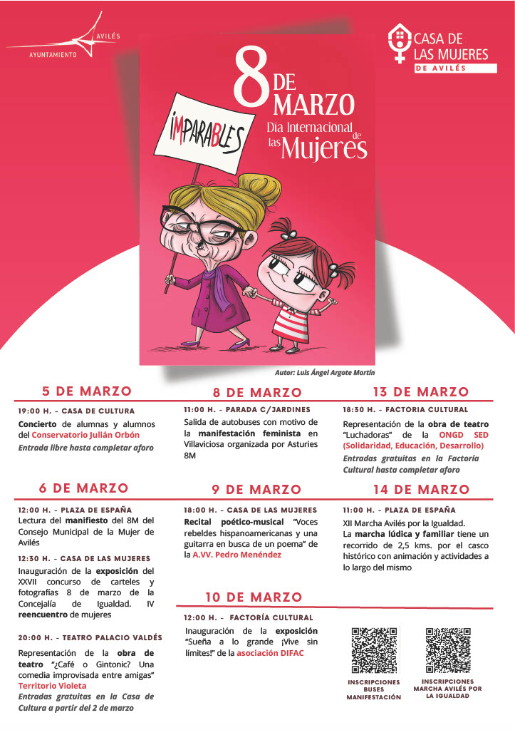 La Concejalía de Igualdad, junto con otras concejalías del Ayuntamiento de Avilés y la colaboración del movimiento asociativo de la ciudad, han programado un nutrido conjunto de actividades para conmemora el 8-M Día Internacional de las Mujeres en la que además de reivindicación y confraternización habrá tiempo para la cultura, la música, recitales de poesía y teatro con dos obras tan distintas como la comedia '¿Café o Gintónic?' y 'Luchadoras', que relata el drama que viven la mayoría de las mujeres en la sociedad mexicana.