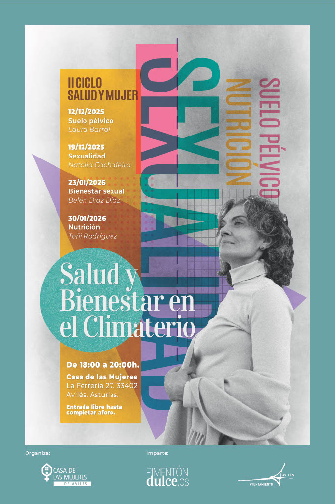 Las jornadas estarán impartidas por diferentes profesionales especializadas en la salud de la mujer y la promoción de hábitos saludables, coordinadas por Belén Díaz de la empresa avilesina Pimentón Dulce. Se desarrollarán en la Casa de las Mujeres a las 18:00 horas y no será necesario realizar una inscripción previa.