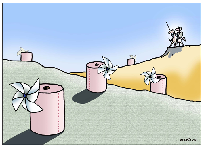 Los humoristas gráficos e ilustradores buscaron inspiración cambiando molinos por virus y comparando la actitud de Quijote ante la desgracia ajena, héroe romántico del siglo XVII, y la de estas personas anónimas convertidas en héroes cotidianos por su entrega desinteresada y solidaria hacia los demás, que afloraron en semejante catástrofe planetaria... ¡pero mostrando todo ello con el filtro del humor!, eficaz recurso con el que enfrentar las adversidades.
